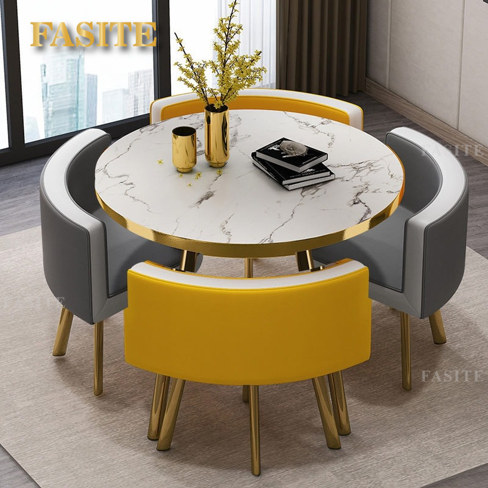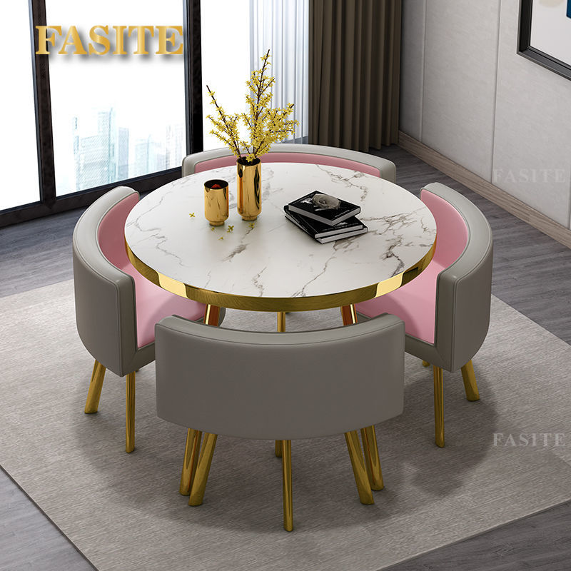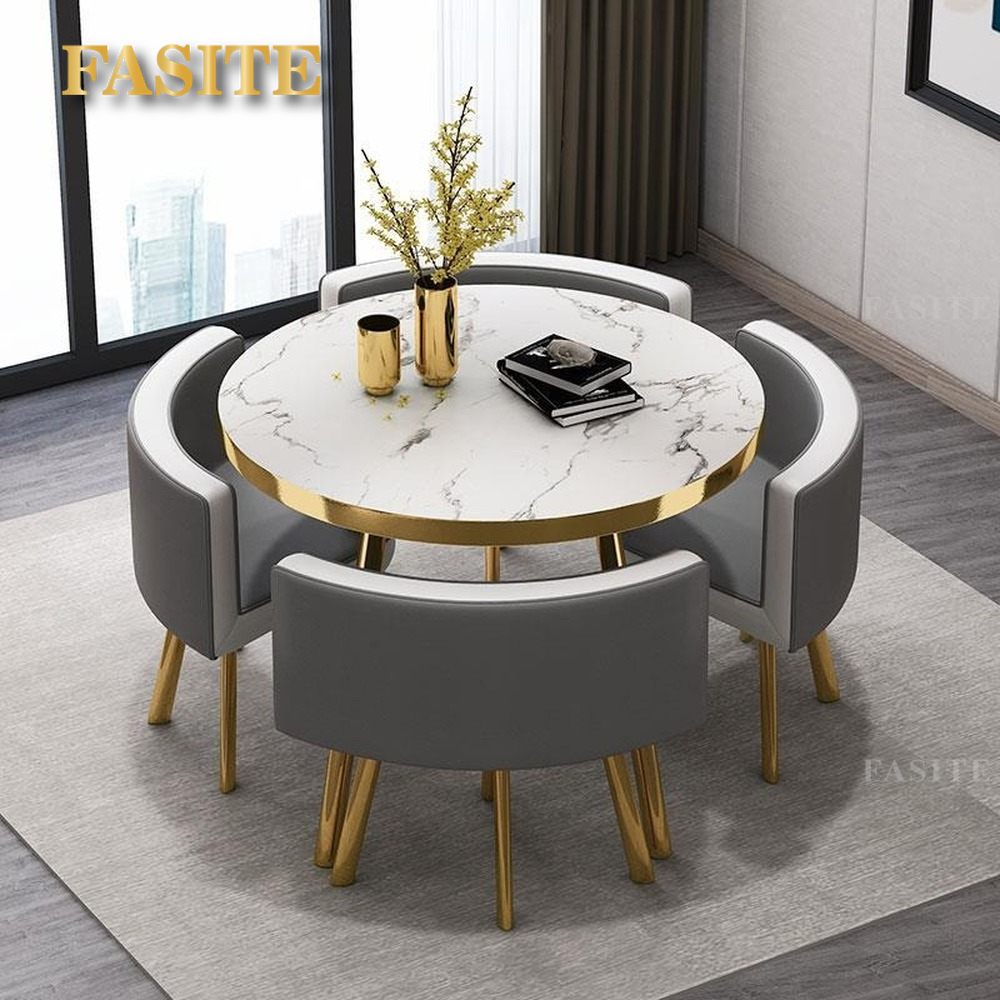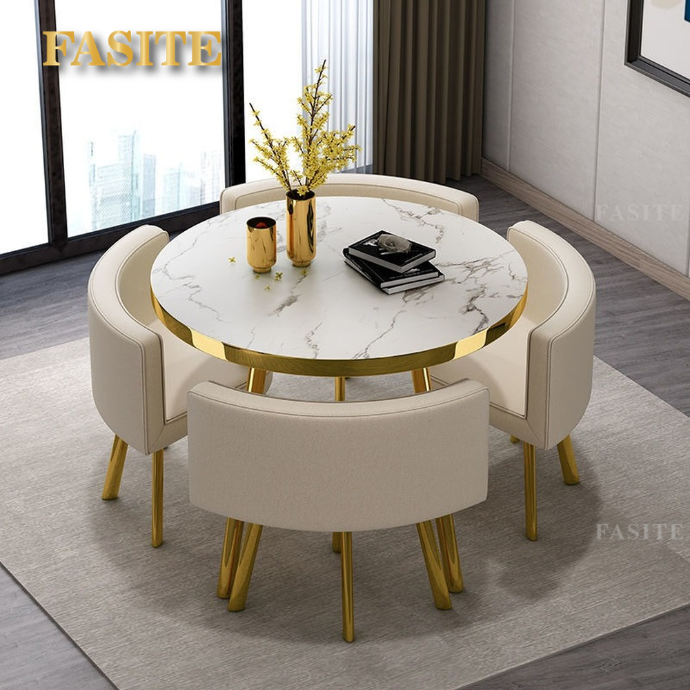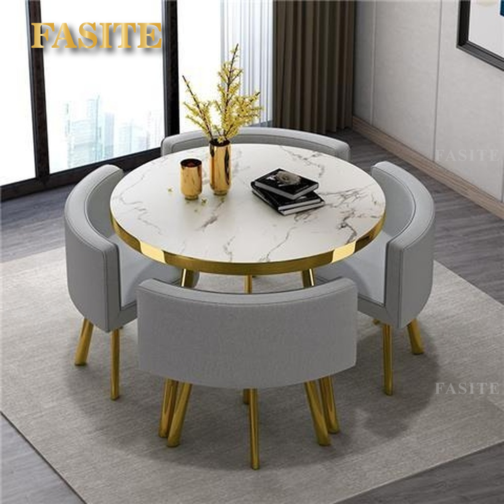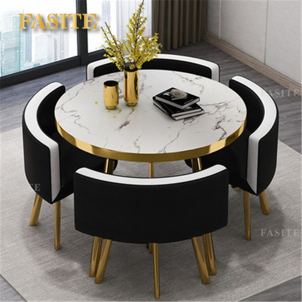 Juego de mesa de comedor redonda de mármol de 80 cm con 4 sillas, mesa central moderna de madera, muebles de apartamento blancos de lujo